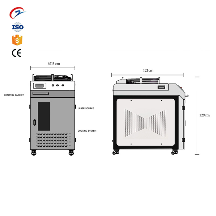 Handheld Fiber Laser Cleaning Machine Benefits 1. all-in-one cupboard, collectively with laser、chiller、touch display display、control tool, small footprint
